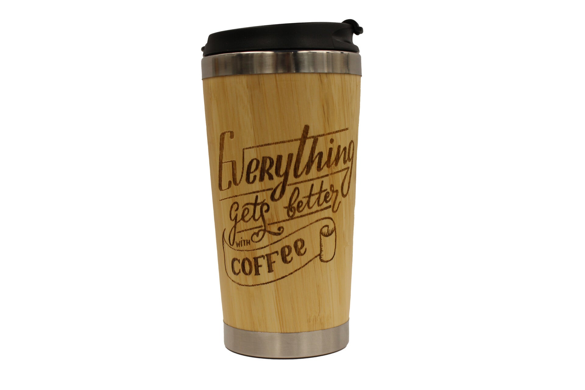 Isolierbecher auch Bambus inkl. hochwertiger Laser-Gravur. Auf dem Isolierbecher aus nachhaltigem Bambusmaterial wirken Lasergravuren besonders hochwertig. Er ist doppelwandig und hat eine verschließbare Trinköffnung. Füllmenge: 350 ml,